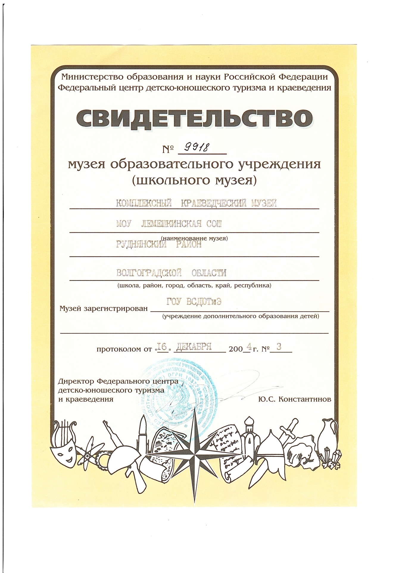 - «Природа родного края»: редкие растения и животные Руднянского района, Волгоградской области. Археологические находки, чучела животных, Красная книга региона»